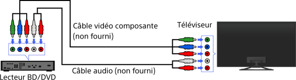 Si votre lecteur BD/DVD est doté de prises vidéo composantes, raccordez-le au téléviseur à l’aide d’un câble vidéo composante et d’un câble audio.