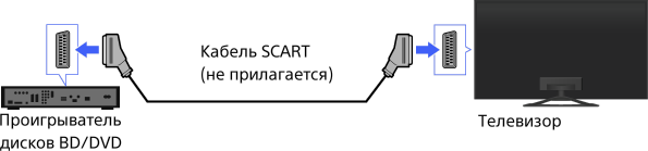 Если проигрыватель BD/DVD оснащен гнездом SCART, подключите его с помощью кабеля SCART.