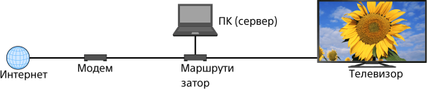 Можно воспроизвести фотографии/музыку/видео, сохраненные на сервере (например, на ПК), подключенном к той же домашней сети, что и телевизор.