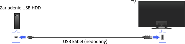 - Pripojenie zariadenia USB HDD prostredníctvom USB rozbočovača nie je podporované. Zariadenie pripojte priamo k TV prijímaču.