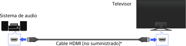 Conecte un sistema de audio (p. ej., sistema de sala de cine en casa) con salida HDMI al televisor mediante un cable HDMI.