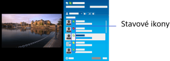 Stavová ikona je zobrazena vedle jednotlivých kontaktů, abyste věděli, zda s nimi můžete navázat hovor.