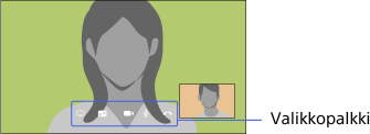 Kun toinen puhuja näkyy koko ruudun kokoisena, voit näyttää tai piilottaa valikkopalkin painamalla