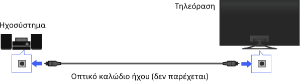 Συνδέστε ένα ηχοσύστημα (π.χ. ένα σύστημα οικιακού κινηματογράφου) με ψηφιακή είσοδο στην τηλεόραση χρησιμοποιώντας ένα οπτικό καλώδιο ήχου.