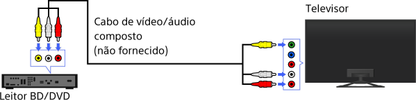 Se o seu leitor de BD/DVD possuir tomadas compostas, ligue-o com um cabo de vídeo/áudio composto.