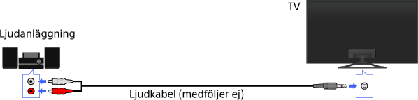 Anslut ett ljudsystem (t.ex. förstärkare) till TV:n med en ljudkabel.