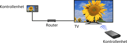 Genom att aktivera renderer-funktionen kan du spela upp foto-/musik-/videofiler i en kontrollenhet (t.ex. digital stillbildskamera) på TV-skärmen genom att styra enheten direkt. En mobil enhet (t.ex. smartphone) kan också fungera som TV: ns fjärrkontroll via nätverket.