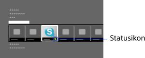 När [Skype] i [Applikation] i Home-menyn väljs, visas en statusikon intill [Skype], och indikerar statusen för ditt Skype-konto.