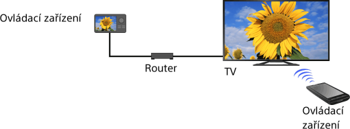 Povolením funkce rendereru můžete přehrávat soubory fotografií/hudby/videa v ovládacím zařízení (např. digitálním fotoaparátu) na obrazovce televizoru přímým ovládáním tohoto zařízení. Mobilní zařízení (např. smartphone) lze také prostřednictvím domácí sítě používat jako dálkové ovládání televizoru.