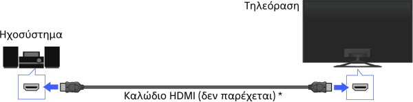 Συνδέστε ένα ηχοσύστημα (π.χ. ένα σύστημα οικιακού κινηματογράφου) με έξοδο HDMI στην τηλεόραση, χρησιμοποιώντας ένα καλώδιο HDMI.