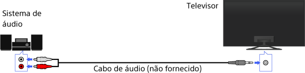 Ligue um sistema de áudio (por exemplo, um amplificador) ao televisor, utilizando um cabo de áudio.