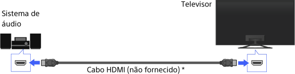 Ligue um sistema de áudio (por exemplo, um sistema de cinema em casa) com saída HDMI ao televisor, utilizando um cabo HDMI.