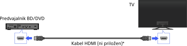 Povezava HDMI je priporočljiva za optimalno kakovost slike. Če ima predvajalnik BD-jev/DVD-jev priključek HDMI (režo), ga priključite s kablom HDMI.