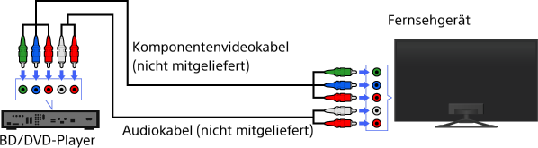 Wenn der BD/DVD-Player über Komponentenvideobuchsen verfügt, schließen Sie ihn über ein Komponentenvideokabel und ein Audiokabel an das Fernsehgerät an.