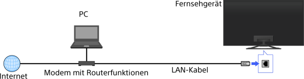 Über eine Kabel-LAN-Verbindung können Sie eine Verbindung zum Internet und zu Ihrem Heimnetzwerk herstellen. Schließen Sie ein LAN-Kabel an das Fernsehgerät an.