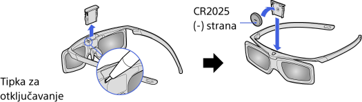 Uklonite izolaciju baterije prije prve upotrebe Aktivnih 3D naočala.