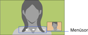Amikor a másik fél képe látszik a teljes képernyőn, a menüsort a gomb megnyomásával jelenítheti meg/rejtheti el.