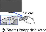 Når du bruker Aktive 3D Briller for første gang, holder du brillene innenfor en avstand på 50 cm fra TV-en og slår på TV-en mens du holder