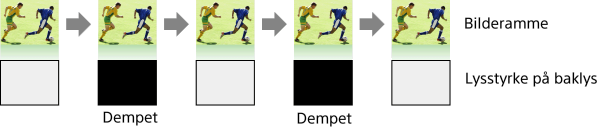 TV-en justerer lysstyrken på baklyset i henhold til [Scenevalg]-innstillingen. Du kan spare strøm ved å aktivere denne funksjonen.