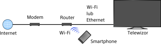 [Sieć] → [Ustawienia sieci domowej] → [Urządzenie zdalne/Renderer] → [Urządzenie zdalne/Renderer]. - Nazwa i dostępne funkcje „TV SideView” podlegają zmianom.