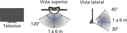- O ângulo e a distância de visualização recomendados podem variar, dependendo da localização do televisor e das condições do local.
