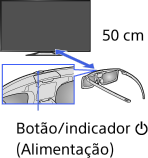 Quando utilizar óculos 3D ativos pela primeira vez, mantenha os óculos dentro de um alcance de 50 cm do televisor e ligue o televisor mantendo premido o botão/indicador