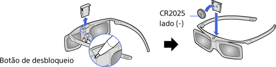 Retire a película isoladora da pilha antes de utilizar os Óculos 3D ativos pela primeira vez.