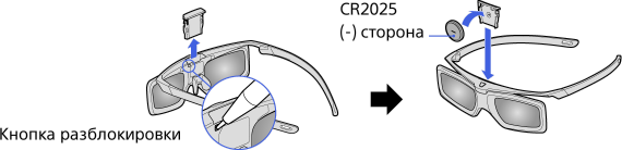 При первом использовании снимите изоляционную пленку батареи активных 3D-очков.