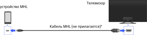 • Если телевизор находится в режиме ожидания и для пункта [Зарядка MHL в реж. ожидания] установлено значение [Вкл.], устройство MHL может заряжаться от телевизора с помощью кабеля MHL.