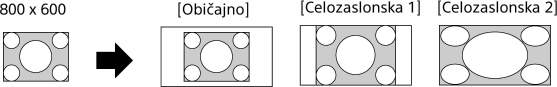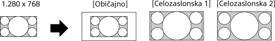 - Prikaže sliko 4:3 v originalni velikosti. Prikazane so stranske vrstice, da se zapolni zaslon 16:9.