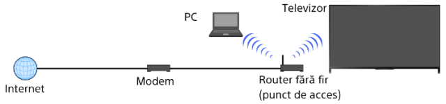 - - În regiunea/ţara în care vă aflaţi, este posibil ca banda de 5 GHz să nu fie acceptată. Dacă banda de 5 GHz nu este acceptată, televizorul se poate conecta numai la un router (punct de acces) wireless care utilizează banda de 2,4 GHz.
