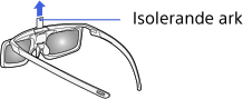 När du första gången använder de aktiva 3D-glasögonen tar du bort batteriets isolerande ark.