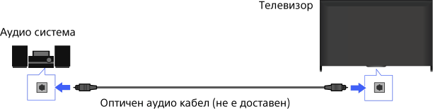 Свържете аудио система (напр. система за домашно кино) с цифров вход към телевизора, като използвате оптичен аудио кабел.