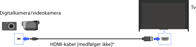 Tilslut dit Sony-digitalkamera eller -videokamera ved hjælp af et HDMI-kabel. Brug et kabel, som har et HDMI-ministik til digitalkamera/videokamera og et standard-HDMI-stik til tv'et.
