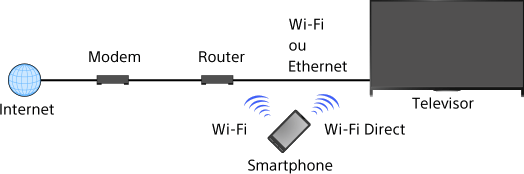 • Também pode ligar a aplicação “TV SideView” ao televisor por Wi-Fi Direct. Ative a função Wi-Fi Direct do televisor selecionando [Parâmetros] → [Rede] → [Wi-Fi Direct] → [Ativar] e navegue até à página [Definições Wi-Fi Direct] do televisor selecionando [Parâmetros] → [Rede] → [Definições Wi-Fi Direct].