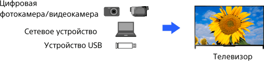 Фотография с разрешением 4K или более высоким может быть отображена в разрешении 4K (3840×2160). Вы можете подключить цифровую фотокамеру/видеокамеру с поддержкой вывода HDMI 4K к HDMI IN телевизора для отображения фотографий с камеры в высоком разрешении. Вы также можете отображать фотографии в высоком разрешении с подключенных USB-устройств или домашней сети.