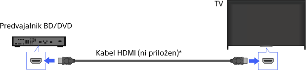 Povezava HDMI je priporočljiva za optimalno kakovost slike. Če ima predvajalnik BD-jev/DVD-jev priključek HDMI (režo), ga priključite s kablom HDMI.