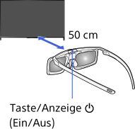 Wenn Sie die 3D-Aktivbrille zum ersten Mal verwenden, halten Sie sie maximal 50 cm vom Fernsehgerät entfernt, schalten das Fernsehgerät ein und halten die Taste/Anzeige
