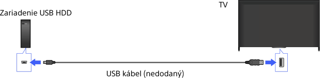 - Pripojenie zariadenia USB HDD prostredníctvom USB rozbočovača nie je podporované. Zariadenie pripojte priamo k TV prijímaču.