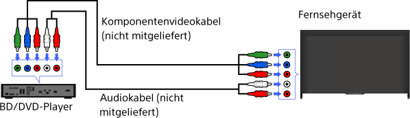 Wenn der BD/DVD-Player über Komponentenvideobuchsen verfügt, schließen Sie ihn über ein Komponentenvideokabel und ein Audiokabel an das Fernsehgerät an.