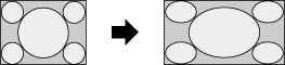 - Prikazuje sliku formata 4:3 u njenoj originalnoj veličini. Prikazuju se bočne crne pruge da bi se popunio ekran formata 16:9.