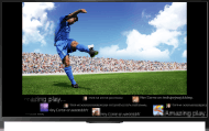 מופיע מסך Social Viewing. (גודל התמונה של התוכנית שבה אתה צופה מוקטן, ומופיע אזור הציוצים.)
