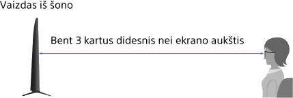 - Rekomenduojamas žiūrėjimo kampas ir atstumas priklauso nuo televizoriaus vietos ir patalpos sąlygų.