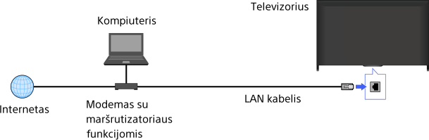 Laidinis LAN ryšys leidžia pasiekti internetą ir namų tinklą. Prijunkite LAN kabelį prie televizoriaus.