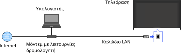 Μια σύνδεση ενσύρματου LAN σάς επιτρέπει να έχετε πρόσβαση στο Internet και στο οικιακό σας δίκτυο. Συνδέστε ένα καλώδιο LAN στην τηλεόρασή σας.