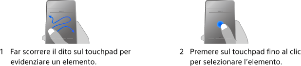 È possibile regolare la sensibilità del touchpad e abilitare o disabilitare la guida all’uso del touchpad. Premere il pulsante HOME, quindi selezionare [Impostazioni] → [Impostazioni Sistema] → [Impostazione del Touchpad] → la voce desiderata.