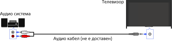 Свържете аудио система (напр. усилвател) към телевизора чрез аудио кабел.