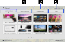 Tämä oppaan usein katsellut sivut voidaan tallentaa käyttämällä väripainiketta. Lisätietoja suosikkeihin lisäämisestä saat painamalla väripainiketta, joka vastaa [Näytä suosikki] -toimintoa näytön alareunassa.