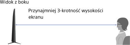 • Zalecany kąt oglądania i odległość mogą różnić się w zależności od lokalizacji telewizora i warunków panujących w pomieszczeniu.