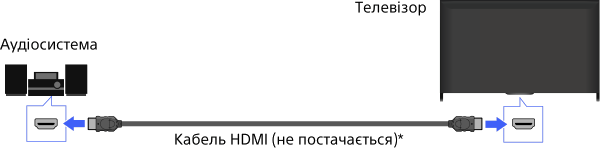 Підключення до телевізора аудіосистеми (наприклад, домашнього кінотеатру) із гніздом HDMI за допомогою кабелю HDMI.
